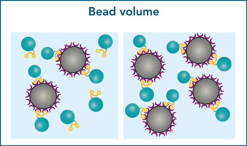 The maximum yield may also be reached when using a lower bead volume, but the incubation time may be noticeably longer.