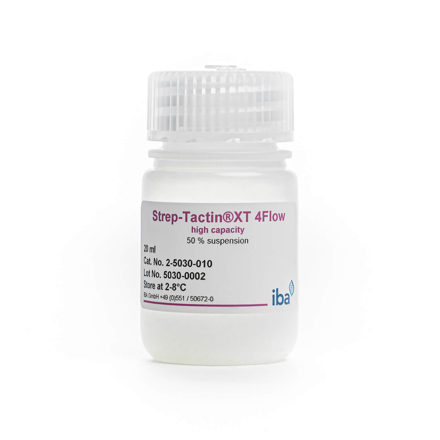 Strep-Tactin®XT 4Flow® high capacity is perfectly suited for purifying Strep-tag®II or Twin-Strep-tag® fusion proteins. This resin offers excellent pressure stability, pH compatibility, and target purity (> 95%). Additionally, this resin is compatible with a broad range of reagents.