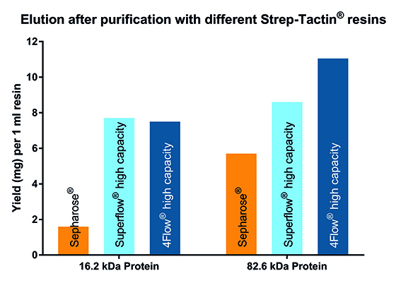 Strep-Tactin® 4Flow® high capacity consists of a low concentrated (4%) and pressure stable agarose coupled with high Strep-Tactin® density. These specifications lead to