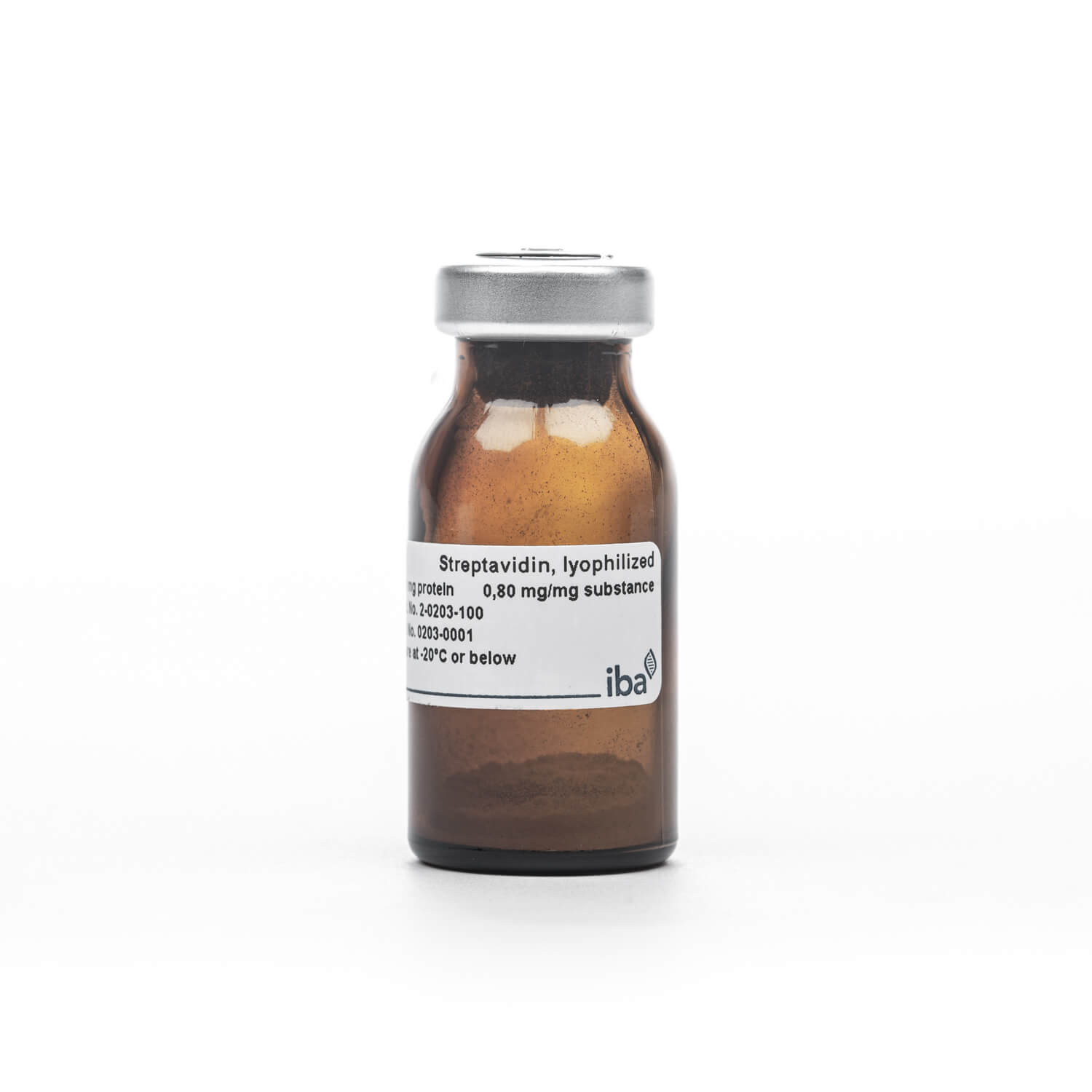 IBA Lifesciences provides bulk amounts of lyophilized streptavidin in reliable and high quality at competitive prices to generate streptavidin-coated surfaces (microplates, SPR chips, beads) or detection reagents conjugated with, e.g., fluorescent dyes. Please note that streptavidin is not applicable for detection, immobilization, and purification of Strep-tag®II and Twin-Strep-tag® fusion proteins, since the binding affinity for both tags is too low.
